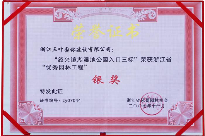 本工程作為整個(gè)鏡湖濕地公園入口標(biāo)志性工程,總施工面積18000多平方米,包括喬灌木種植、崖壁覆綠、休閑廣場、水上木棧道、茶樓、照明系統(tǒng)、背景音響系統(tǒng)等,總造價(jià)850萬元。施工過程中,由于50天超短工期,為確!拔逡弧遍_園,公司抽調(diào)相關(guān)專業(yè)技術(shù)人員,在有關(guān)部門和相關(guān)專家的幫助和指導(dǎo)下,制定各專項(xiàng)施工方案,確保工程按時(shí)順利完成。施工中無質(zhì)量、安全事故發(fā)生,完工后于2007年2月10日一次性通過驗(yàn)收,達(dá)到優(yōu)良等級。并在2007年度浙江省風(fēng)景園林學(xué)會組織的全省優(yōu)秀園林工程評選中獲得銀獎(jiǎng)。