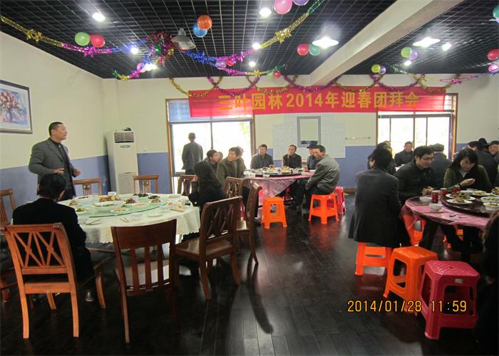 - 辭別2013,迎來2014。新年的鐘聲即將敲響,時光的車輪一軋而過,留下一道道深深的印痕。伴隨著冬日里溫暖的陽光,滿懷著喜悅的心情,大家在這個辭舊迎新的日子里,三葉園林公司舉辦一年一度的團拜會,公司行政、生產(chǎn)、工程、養(yǎng)護、苗圃基地管理人員在公司總部歡聚一堂,回憶三葉歷史,展望三葉未來。首先,由董事長金玉兔為大家致辭,給大家拜個早年,祝愿大家在新的一年里,身體健康,萬事如意,心想事成!再作了2013年度工作總結,他首先對公司全體員工表示感謝,沒有你們,就沒有公司的未來,接著,從公司在2013年取得的成就和存在不足,以及2014年度工作規(guī)劃,肯定了公司在2013年度取得的成績,深入剖析了公司在發(fā)展過程中,存在的問題與不足。正是源于對園林熱愛和執(zhí)著,才讓大家有機會聚到一起,組成了三葉這個大家庭。接下來就是聚餐時間,在溫馨、和諧的氛圍中,大家一起舉杯,為了明天,干杯。