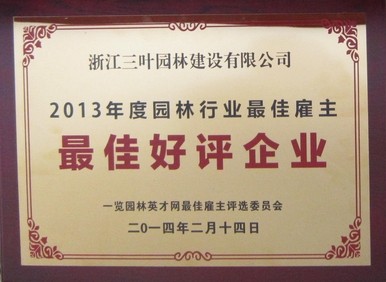 - 熱烈祝賀我司被評(píng)為"2013年度園林行業(yè)最佳雇主最佳好評(píng)企業(yè)"