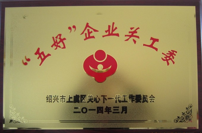 近日,我區(qū)召開2014年度全區(qū)關(guān)心下一代工作會議,公司被紹興市上虞區(qū)關(guān)心下一代工作委員會命名為“五好”企業(yè)關(guān)工委,這是我區(qū)企業(yè)首批開展的評選。