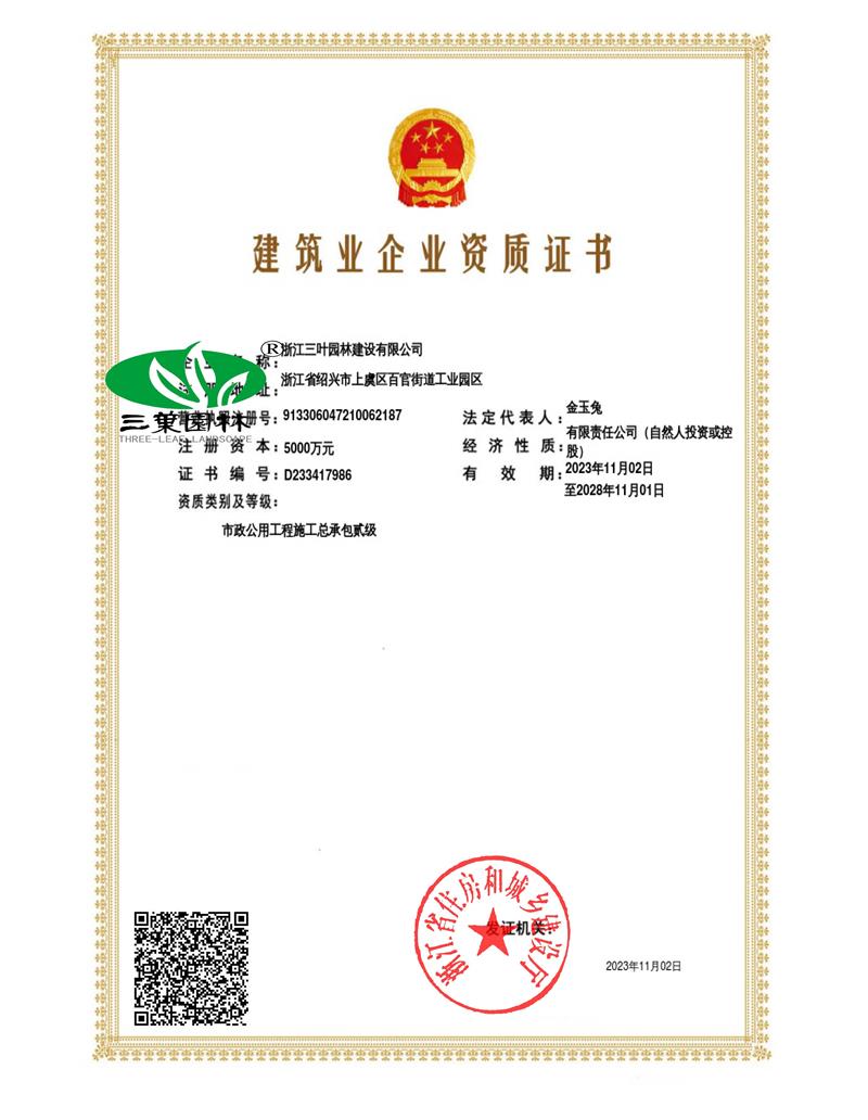 - 三葉園林獲批市政公用工程總承包貳級(jí)
