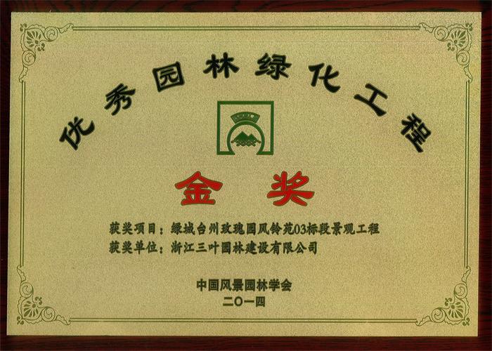 近日,從中國風(fēng)景園林學(xué)會網(wǎng)站上公示了2014年度中國風(fēng)景園林學(xué)會優(yōu)秀園林工程獎評獎結(jié)果通知,浙江三葉園林建設(shè)有限公司于今年5月份申報了“綠城臺州玫瑰園風(fēng)鈴苑03標段景觀工程”項目榮獲“中國風(fēng)景園林學(xué)會優(yōu)秀園林工程獎”金獎,該項目屬于臺州路橋區(qū),高品質(zhì),高檔次的花園式住宅區(qū)小區(qū)。