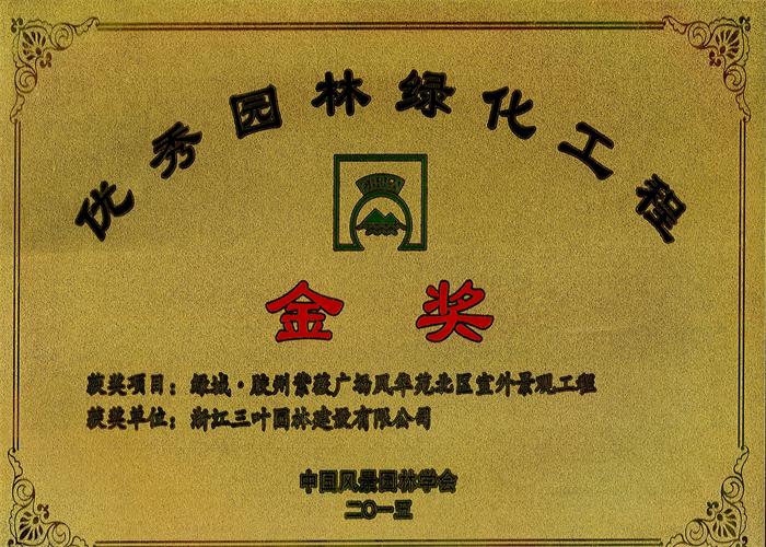 - 三葉園林喜獲"2015年度中國風景園林學會優(yōu)秀園林綠化工程金獎"